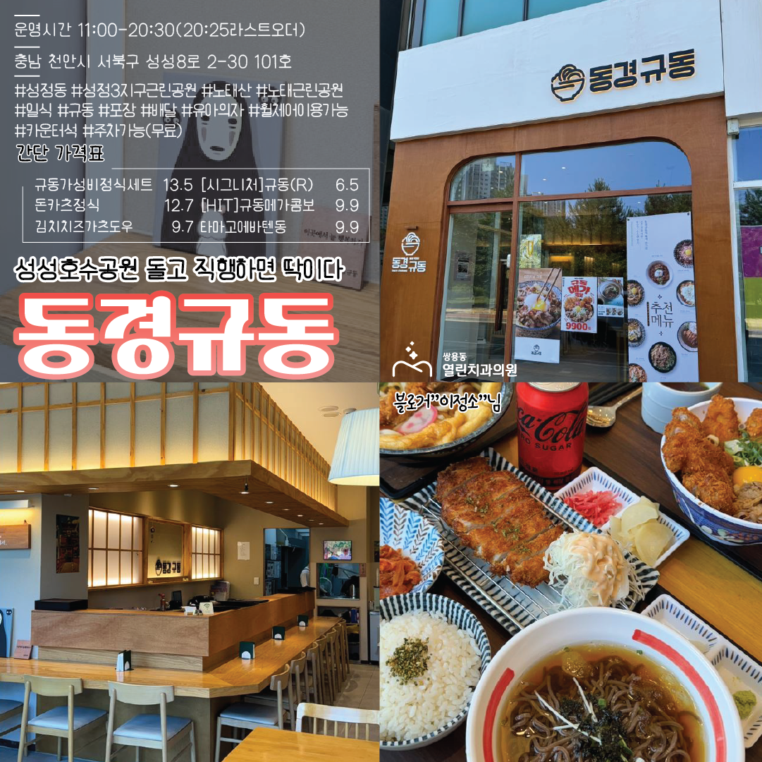 성성호수공원을 한바퀴 돌고 맛있는 일식을 즐겨보실 수 있는 동경규동 입니다.