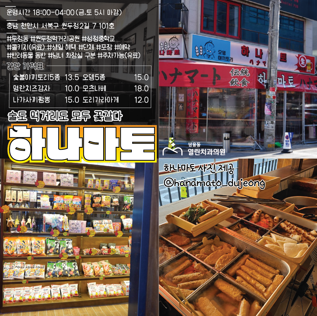 일본식 어묵들과 과자를 먹으며 기모노까지 입어 보실 수 있는 하나마토 입니다.
