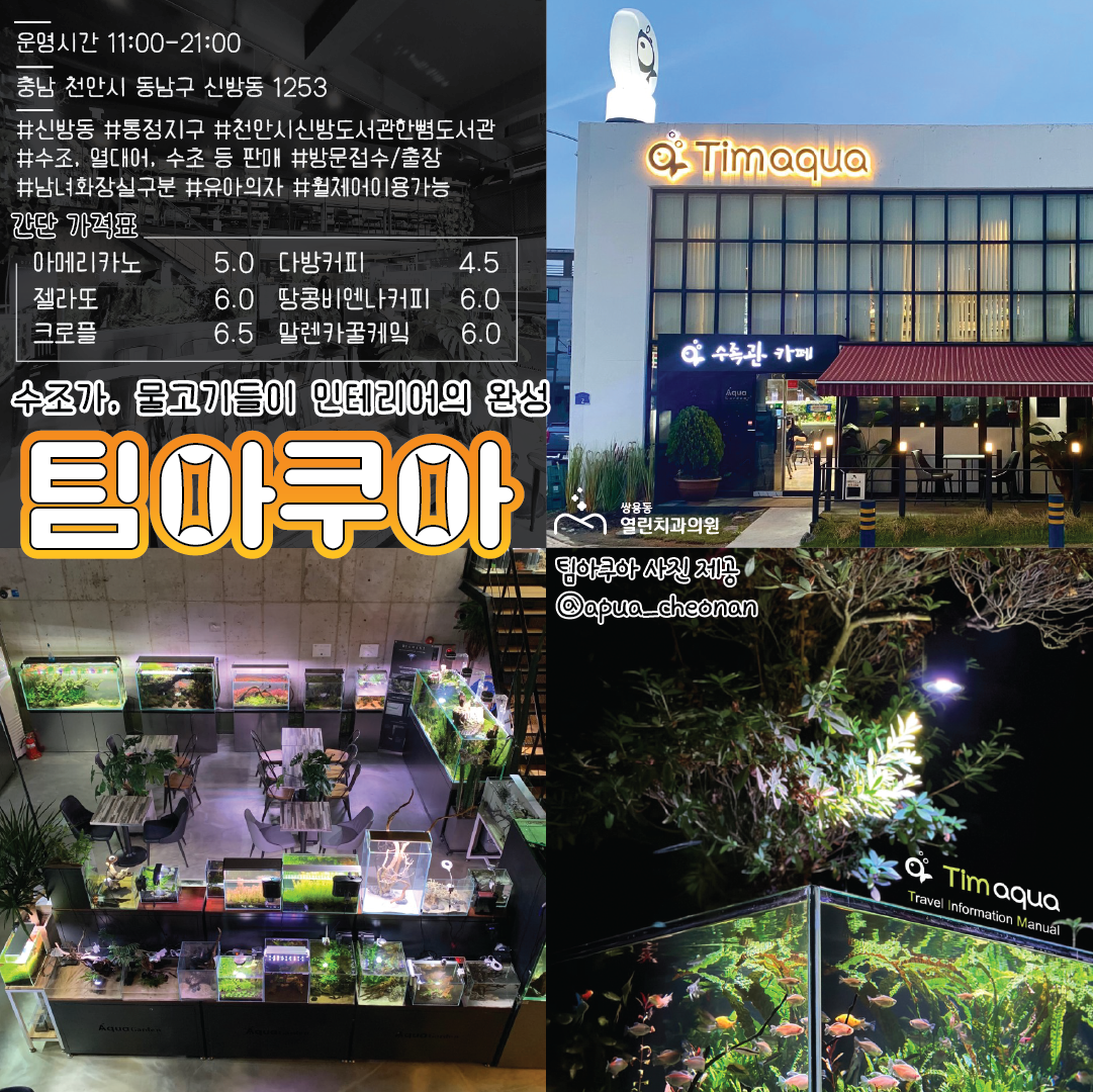 카페에서 바다에 사는 친구들을 구경할 수 있는 '팀아쿠아' 입니다.